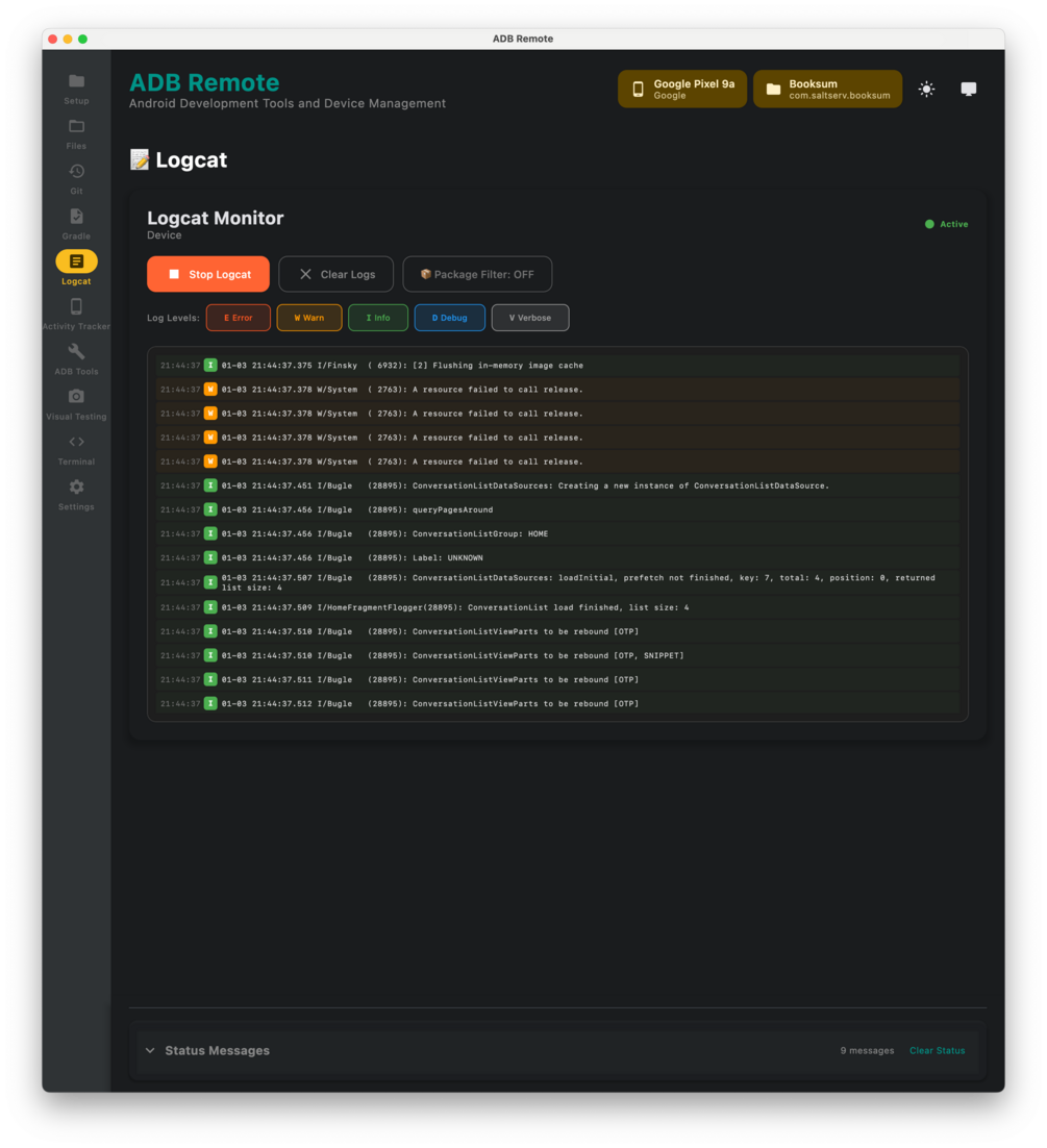 ADB Remote wraps common ADB and Gradle operations into a single interface. Useful for quick tasks like checking logcat, pulling files, running a build on a device, or testing a specific branch—situations where spinning up Android Studio feels like overkill.